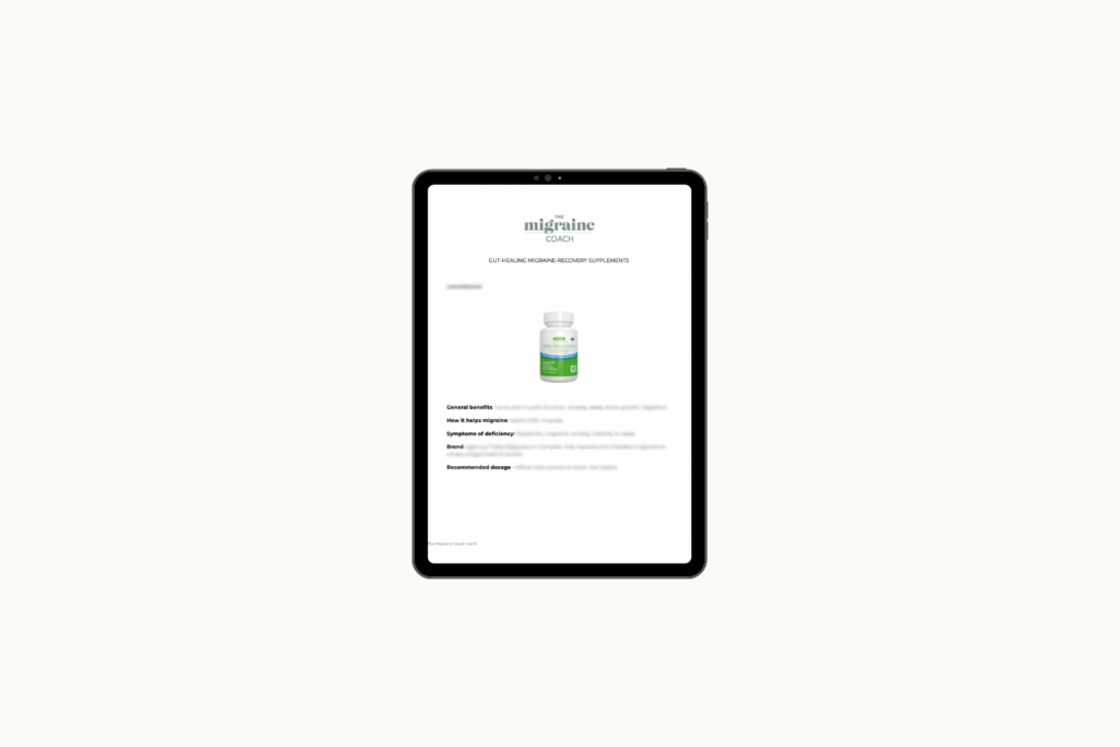 Get the exact list of specialist-recommended, high-quality supplements that helped me drastically reduce my migraines – no guesswork, no gimmicks.